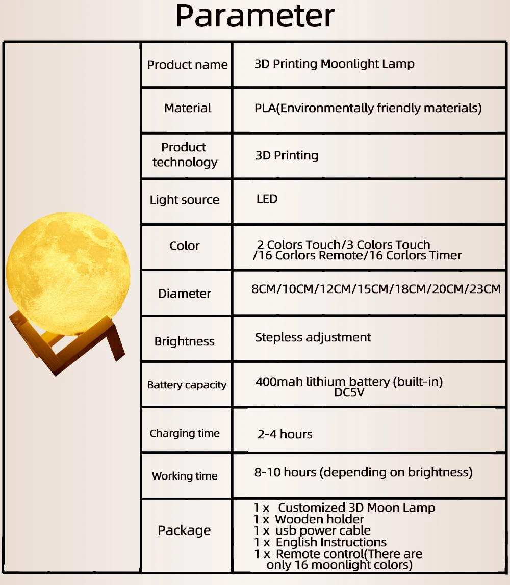 Sim, ambos os lados da lâmpada lunar podem ser impressos (envie-me sua foto e texto ao mesmo tempo, pois o texto e a foto devem ser impressos juntos).
